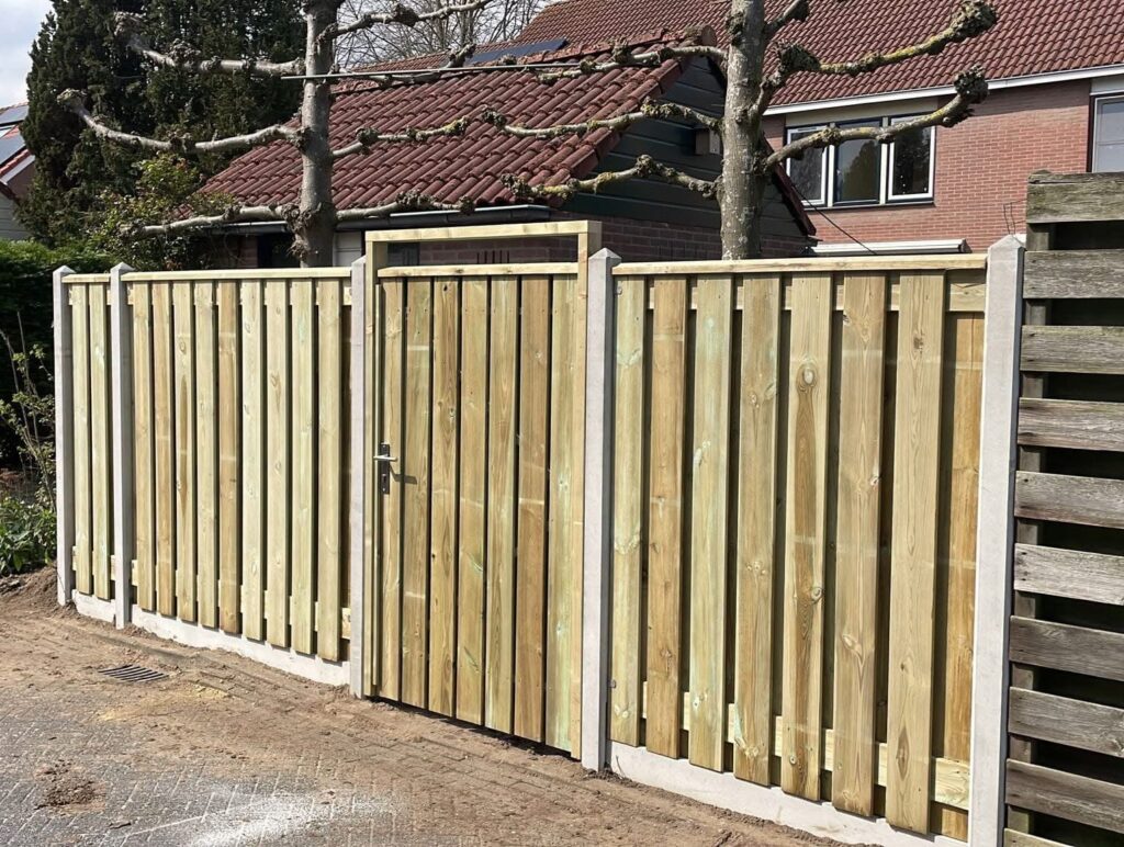 Naast alle diverse hout- en betonsoorten bieden wij ook bijpassende poorten en accessoires in dezelfde kleur als de schutting.